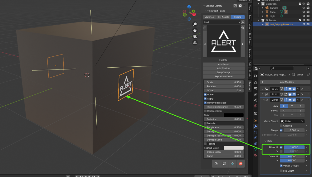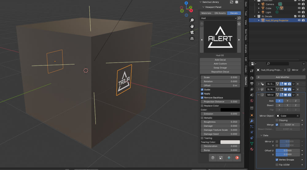 When using the mirror modifier, the textures of the decals also get mirrored.