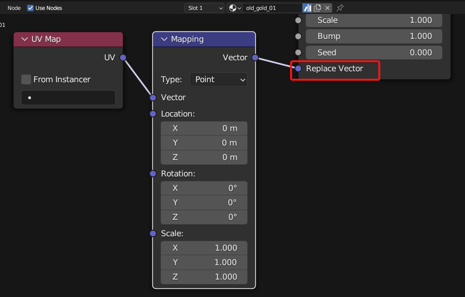 Replace Vector (Only visible in the Shader Editor): An input where you can replace the default vector, you can for example plug a UV Map node with a Mapping node or any other texture coordinate.