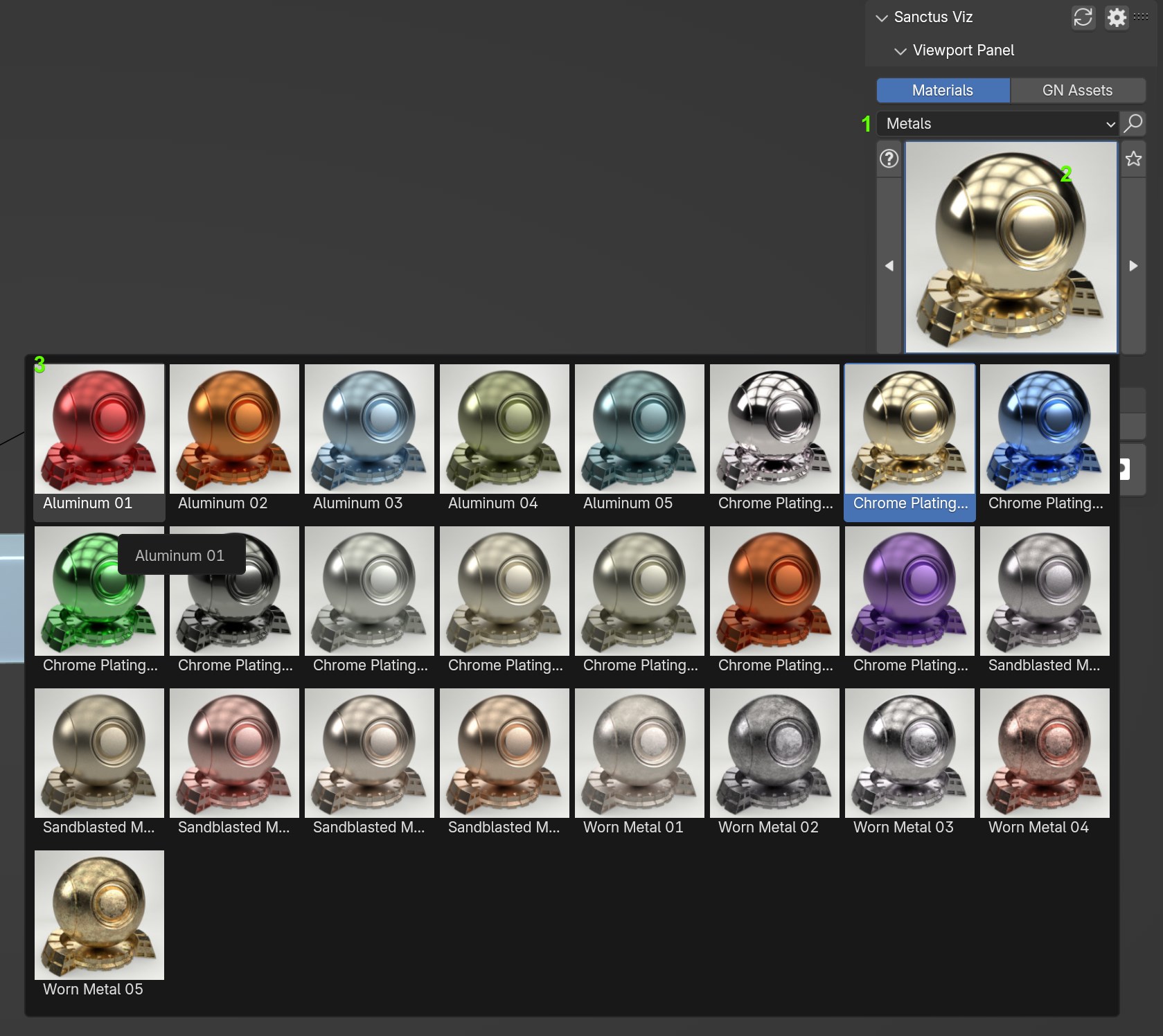 The Sanctus Viz procedural materials were specifically designed to offer superior speed compared to the average Sanctus Library material. I achieved this by aggressively optimizing the node trees and intentionally omitting some of the more costly nodes.